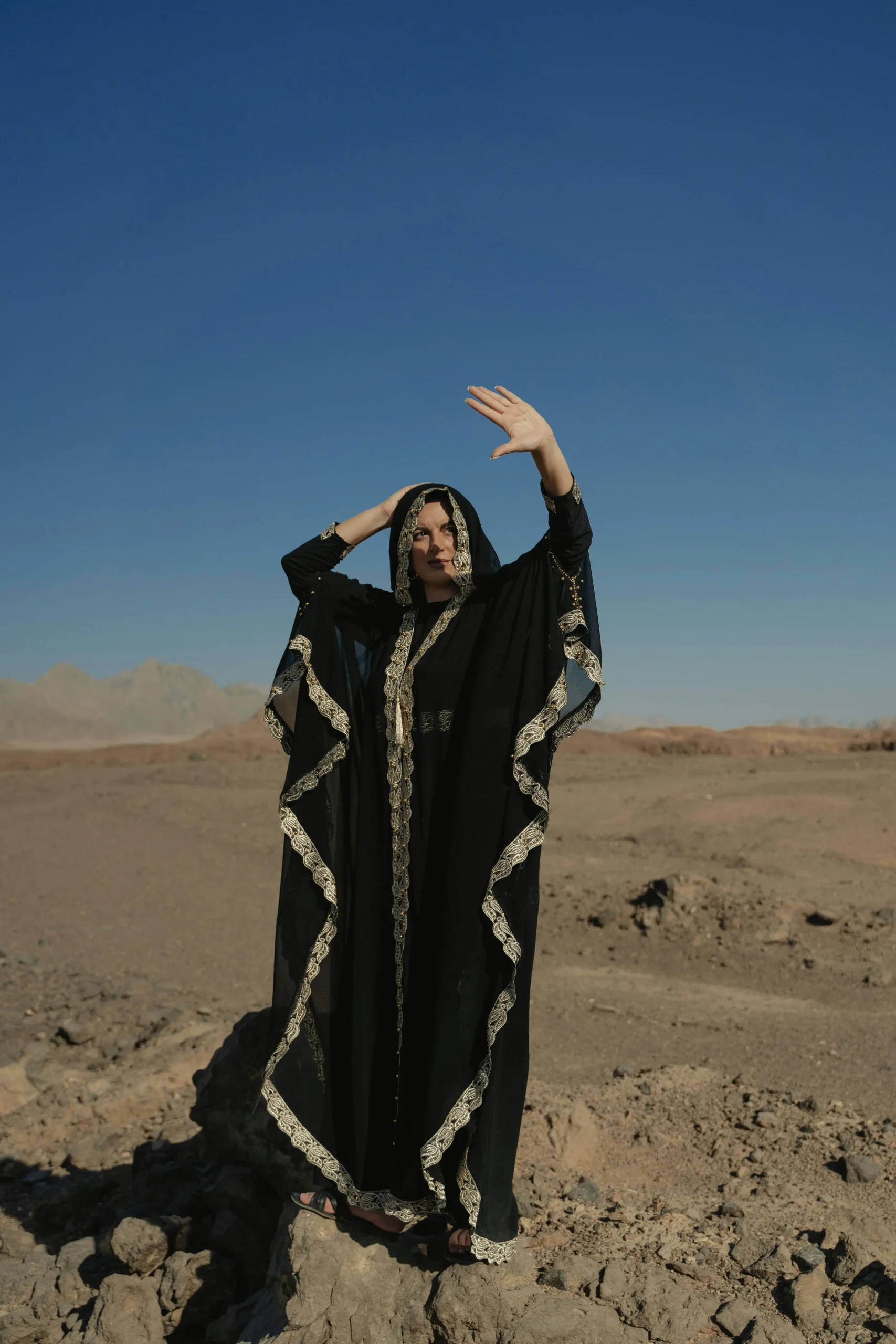A sleek midnight blue abaya with subtle patterned embroidery, offering a contemporary twist on traditional design. Crafted from premium fabric for comfort and luxury, ideal for daily wear.